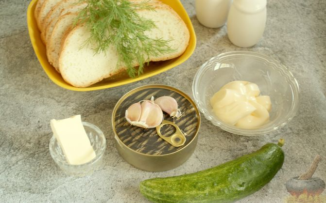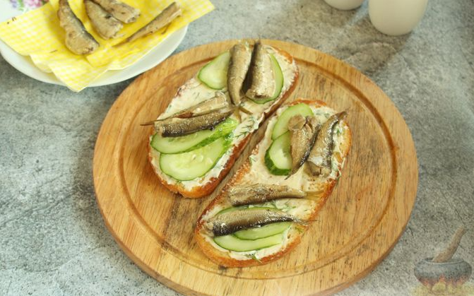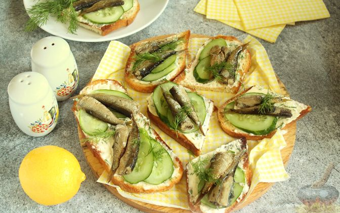 Бутерброди зі шпротами, огірком та часниково-майонезним соусом