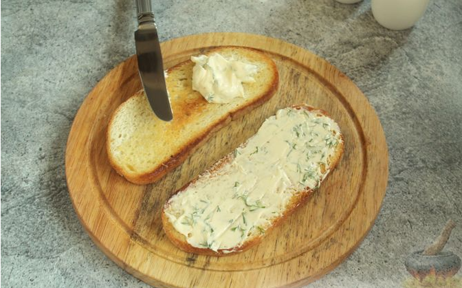 5. Змастіть кожну хлібну скибочку майонезним соусом.